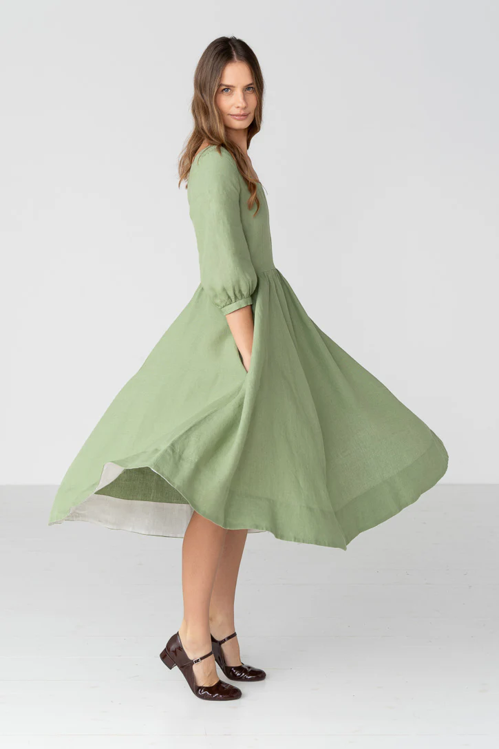 Carmen – Puff Sleeve Linen Midi Dress