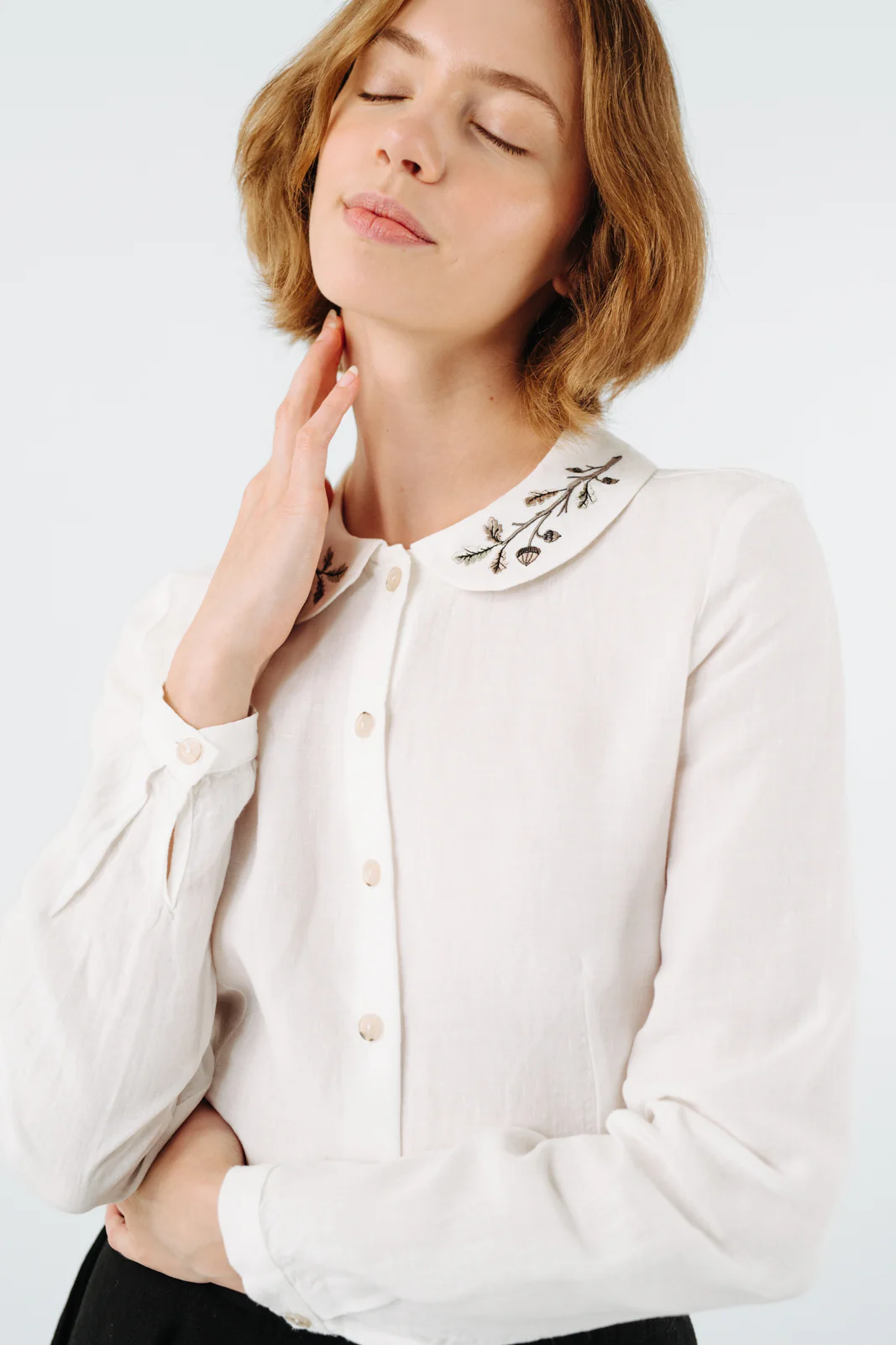 Classic Shirt with Embroidered Collar, Long Sleeve—