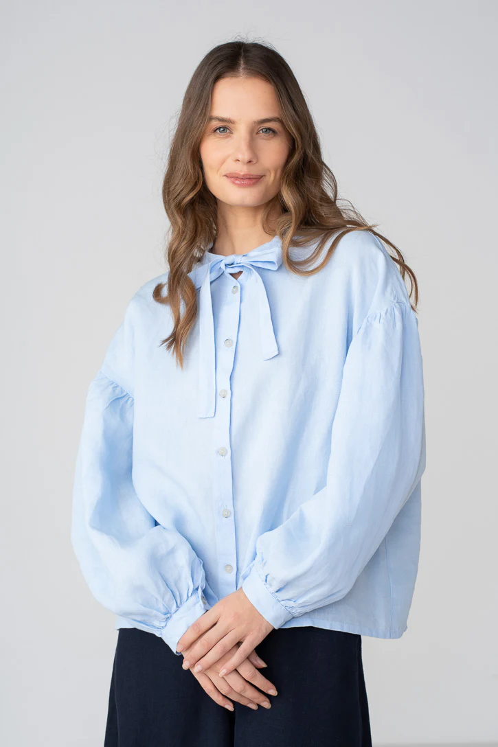 Clementine – Linen Shirt with Bow-Tie Collar