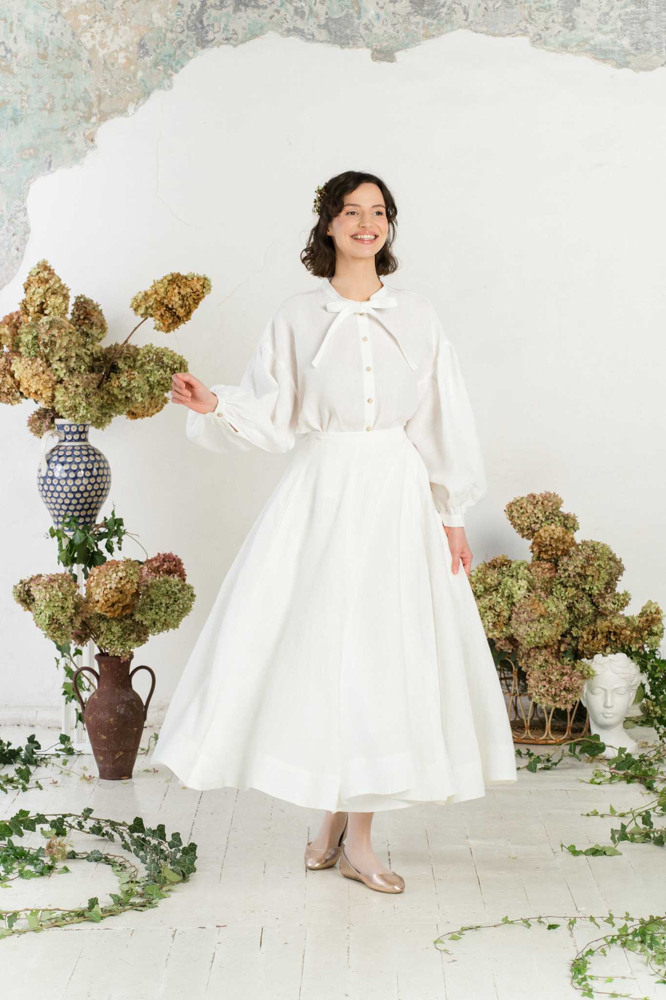 Clementine Shirt, Long Sleeve, White Magnolia