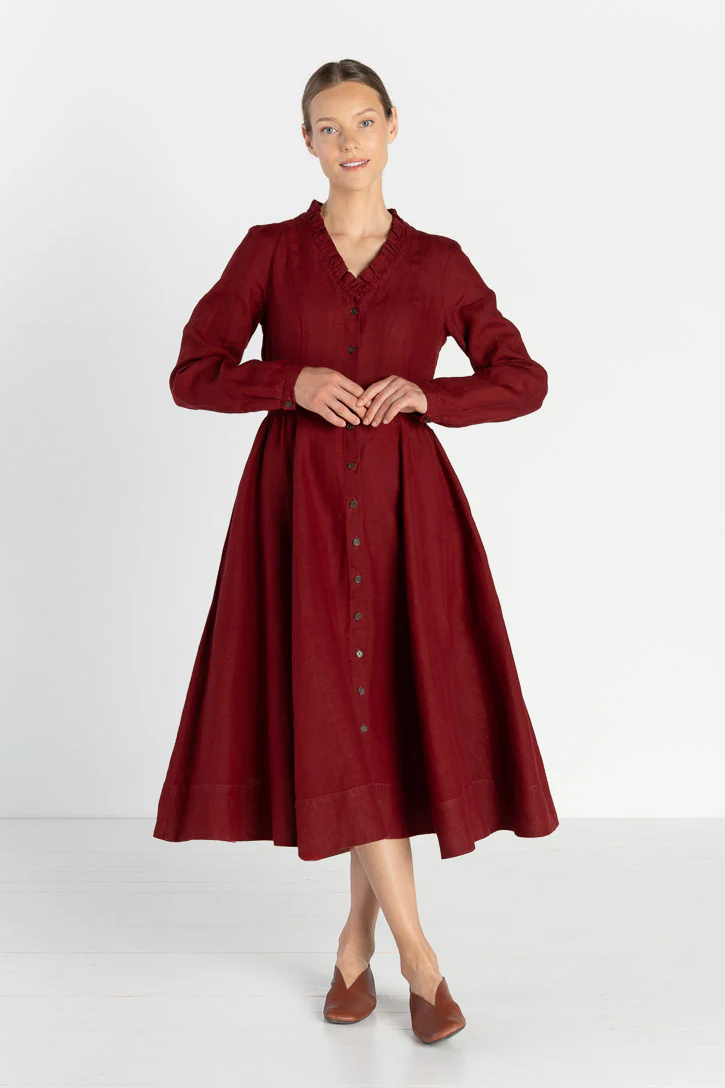 Ophelia – Ruffled V-Neck Linen Midi Dress